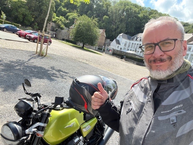 Ayant quand même pas mal roulé avec des V7 et ses déclinaisons (850cc en 2021, Carbone en 2018 et Stornello en 2016), je note que la paire d’amortisseurs arrière apporte toujours autant de fermeté et cause toujours ces irritants petits rebonds sur les portions abîmées qui sont légion sur nos routes belges. En revanche côté freinage, c’est du costaud et j’ai dû patienter quelques kilomètres pour me familiariser avec son mordant.