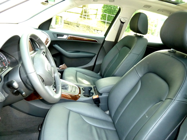 Joli dans sa teinte sable, le Q5 qui dégage une image moins mastodonte que son grand frère le Q7 est déjà en soi assez imposant avec 4.63 m de long. Une caractéristique physique qui lui confère une généreuse habitabilité. Passagers assis à leur aise (même les grands) et volume de coffre de 540 litres au minimum (contre 480 pour le BMW X3 son concurrent) font du Q5 une voiture agréable à vivre d’autant plus que la modularité y est excellente avec une banquette arrière en deux parties coulissante et des dossiers de sièges inclinables. Seul bémol : la surface de chargement une fois les dossiers rabattus n’est pas parfaitement plane.